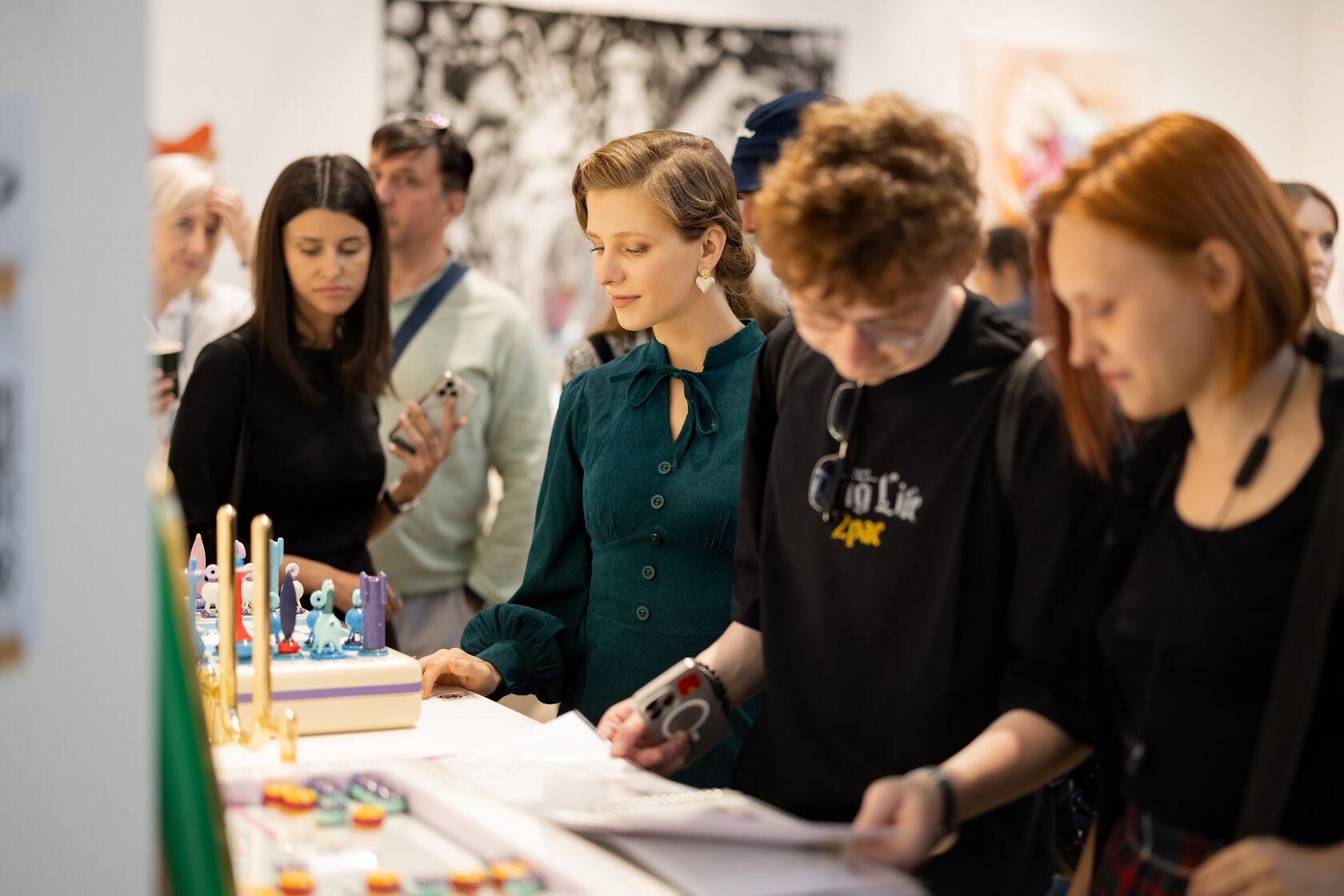 Актриса театра и кино на стенде Тараса Желтышева во время арт-ярмарки Cosmoscow-2025